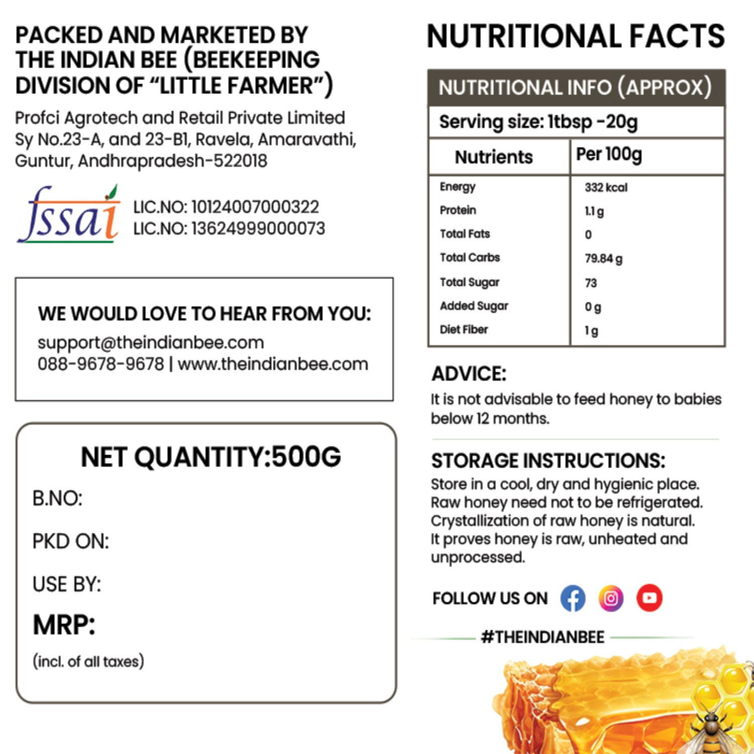Sourced from the nectar of Eucalyptus blossoms, The Indian Bee Eucalyptus Raw Honey is a bold and aromatic variety with a distinct herbal, woody, and slightly menthol-like profile. Harvested from pristine forests where eucalyptus trees thrive, this honey is 100% raw, unprocessed, and free from any additives or artificial processing, preserving its natural medicinal properties, antioxidants, and enzymes.